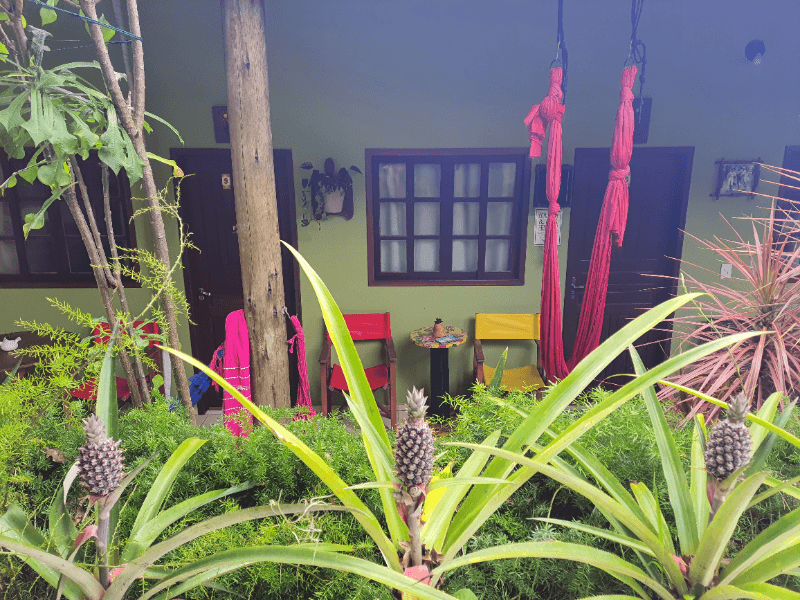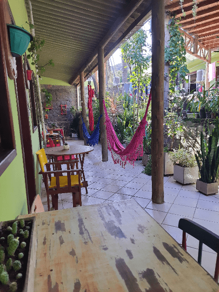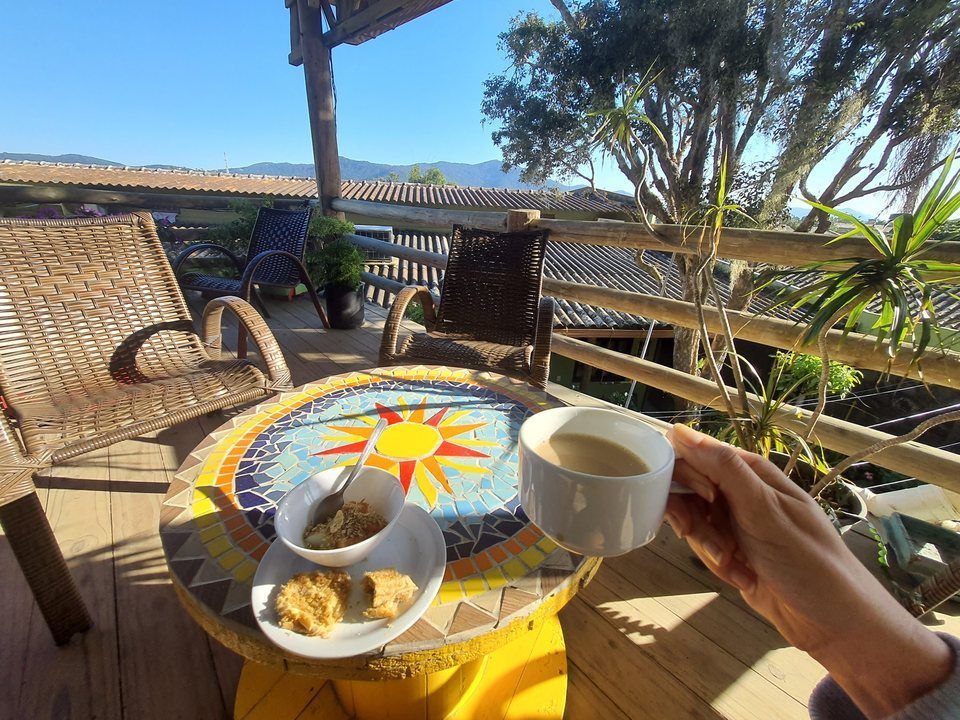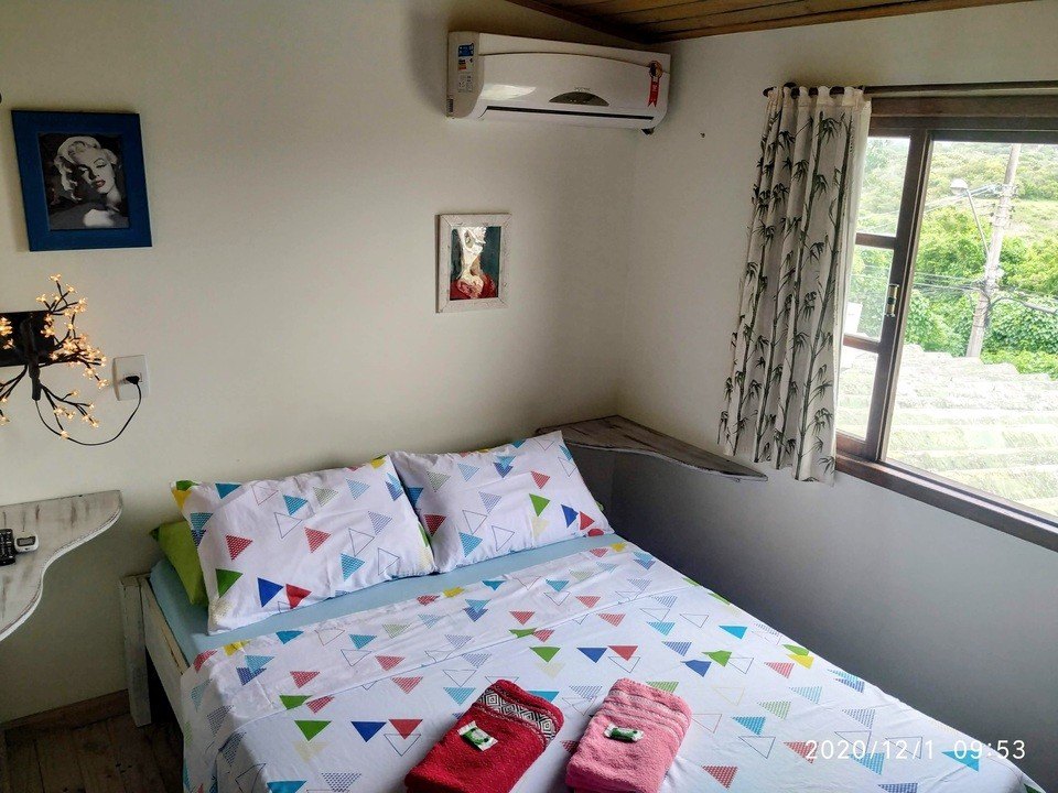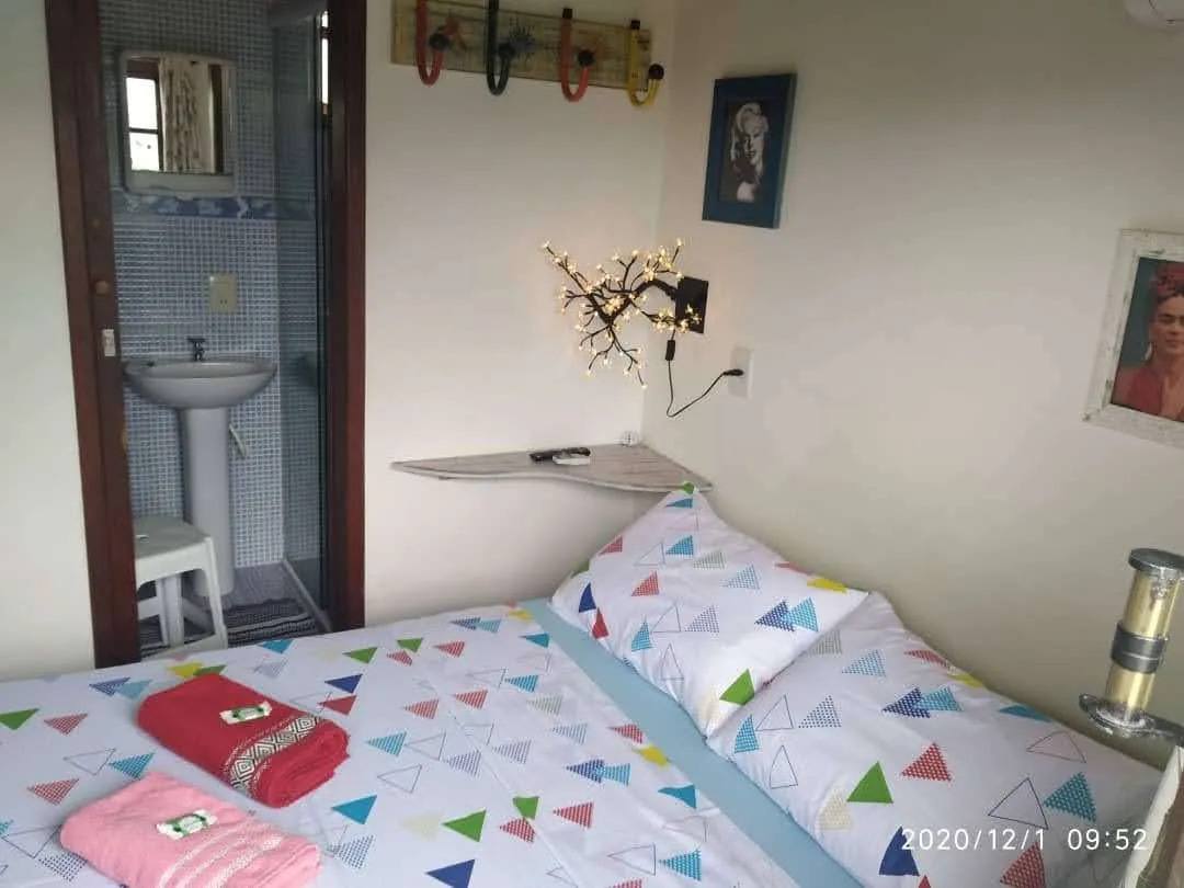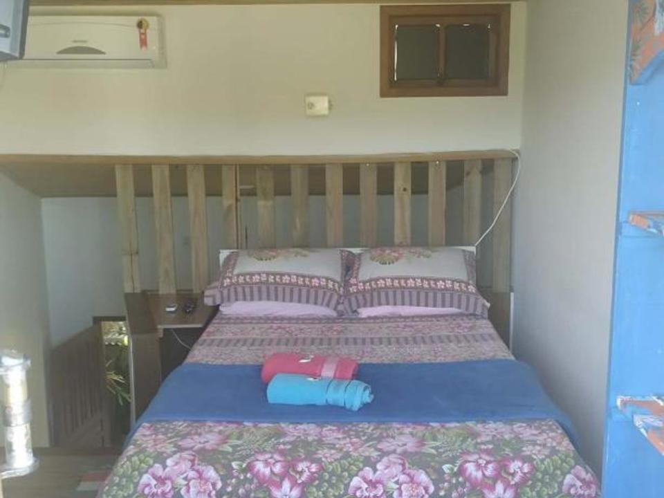 Suítes com cama de casal e beliche, ar condicionado split, smartv, geladeira, roupas de cama e banho , wi-fi e banheiro privativo. Localizada no terraço, onde também temos um deck espaço de uso comum tranquilo e agradável.